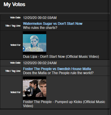 1. There you will see a full table of all your votes with links to the battles.
